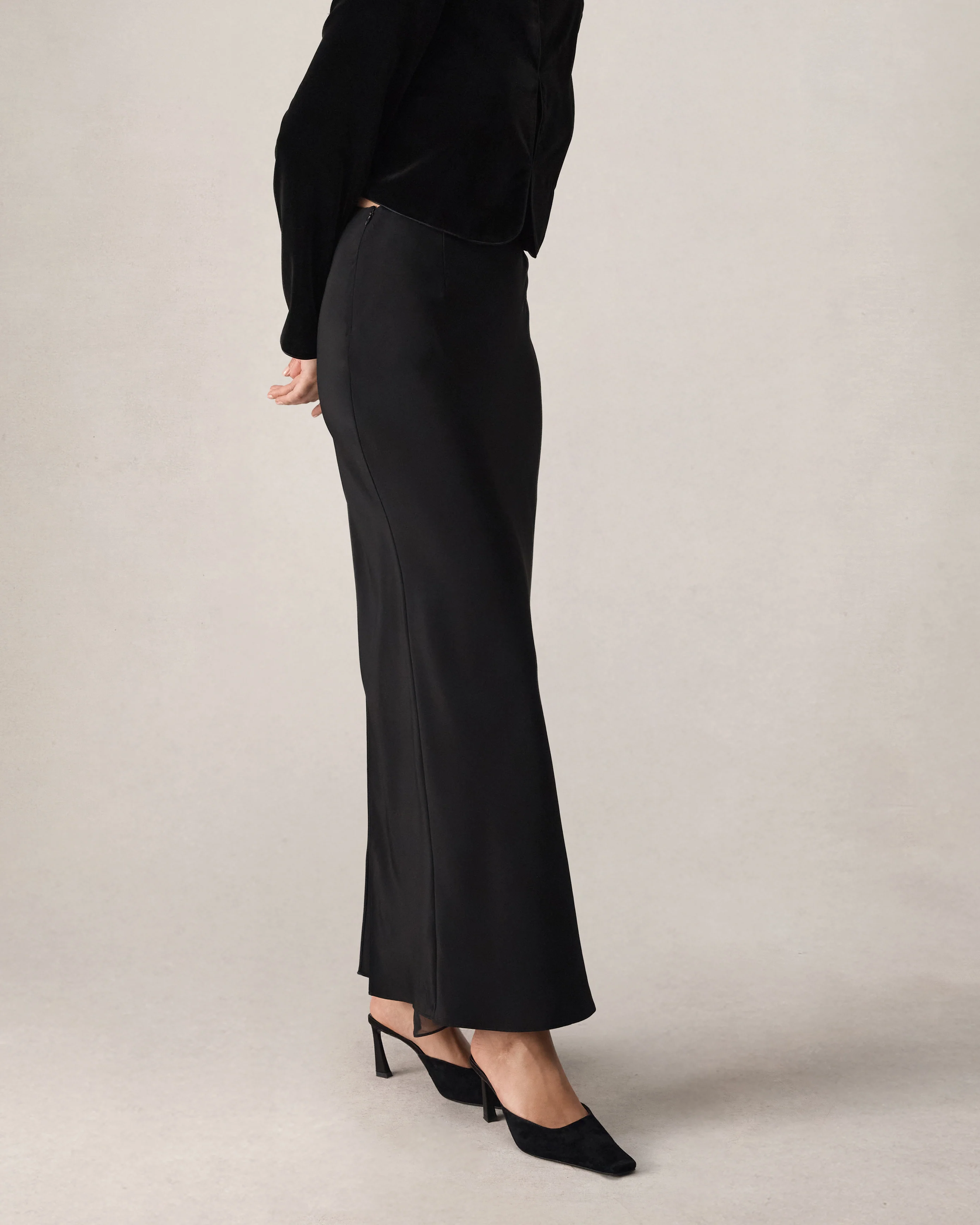 Alana is a bias-cut maxi skirt that moves fluidly with the body, elevated with a sheer silk georgette underlay draped beautifully below the hem. Crafted from sand-washed silk with a concealed side zip, it offers an elegant, effortless foundation for evening dressing.