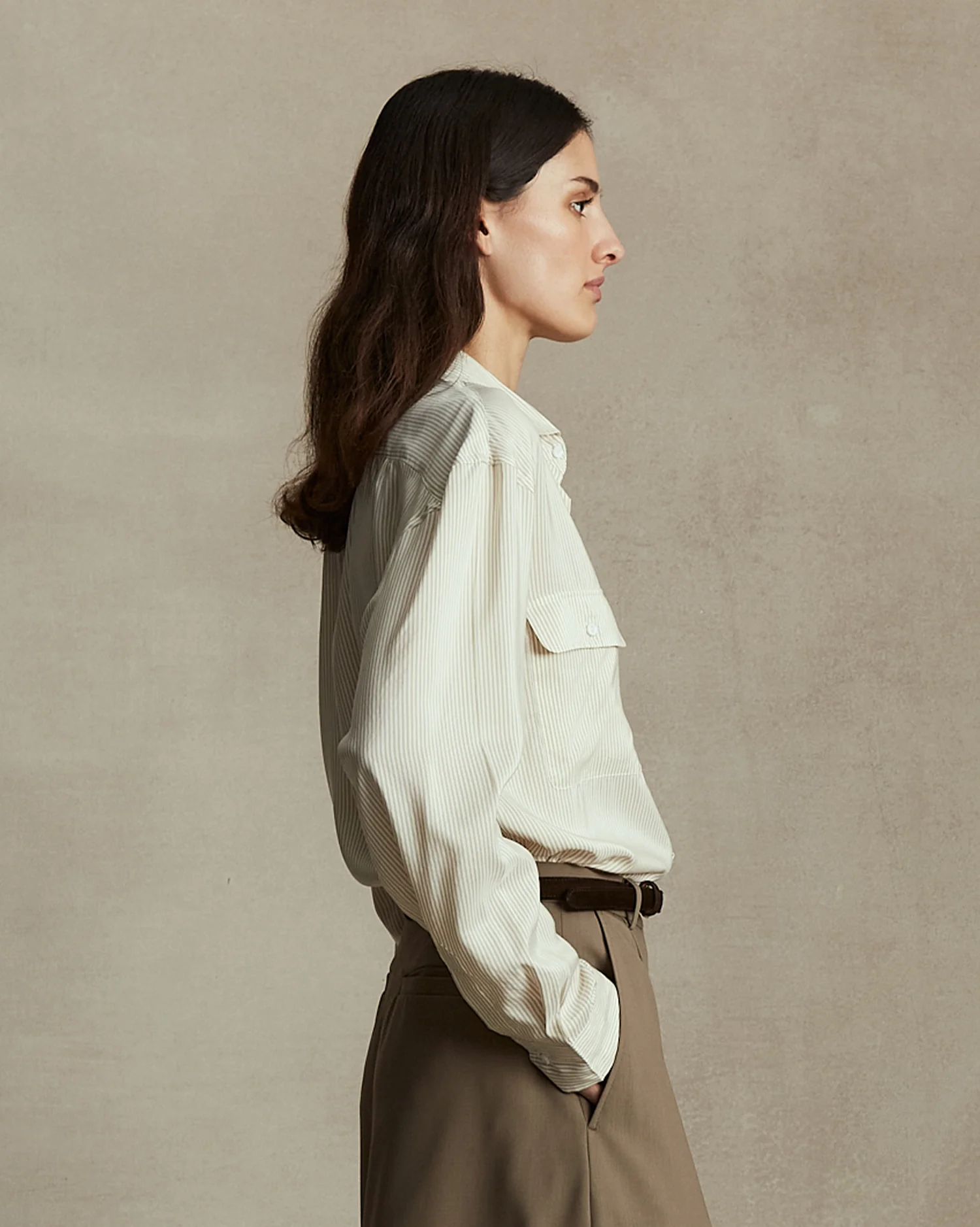 Introducing the Camilla Shirt, a luxurious addition to your wardrobe, meticulously crafted from 100% silk. This oversized shirt, with its relaxed fit and effortless drape, is the ideal neutral basic. Perfect for layering over your summer ensemble.