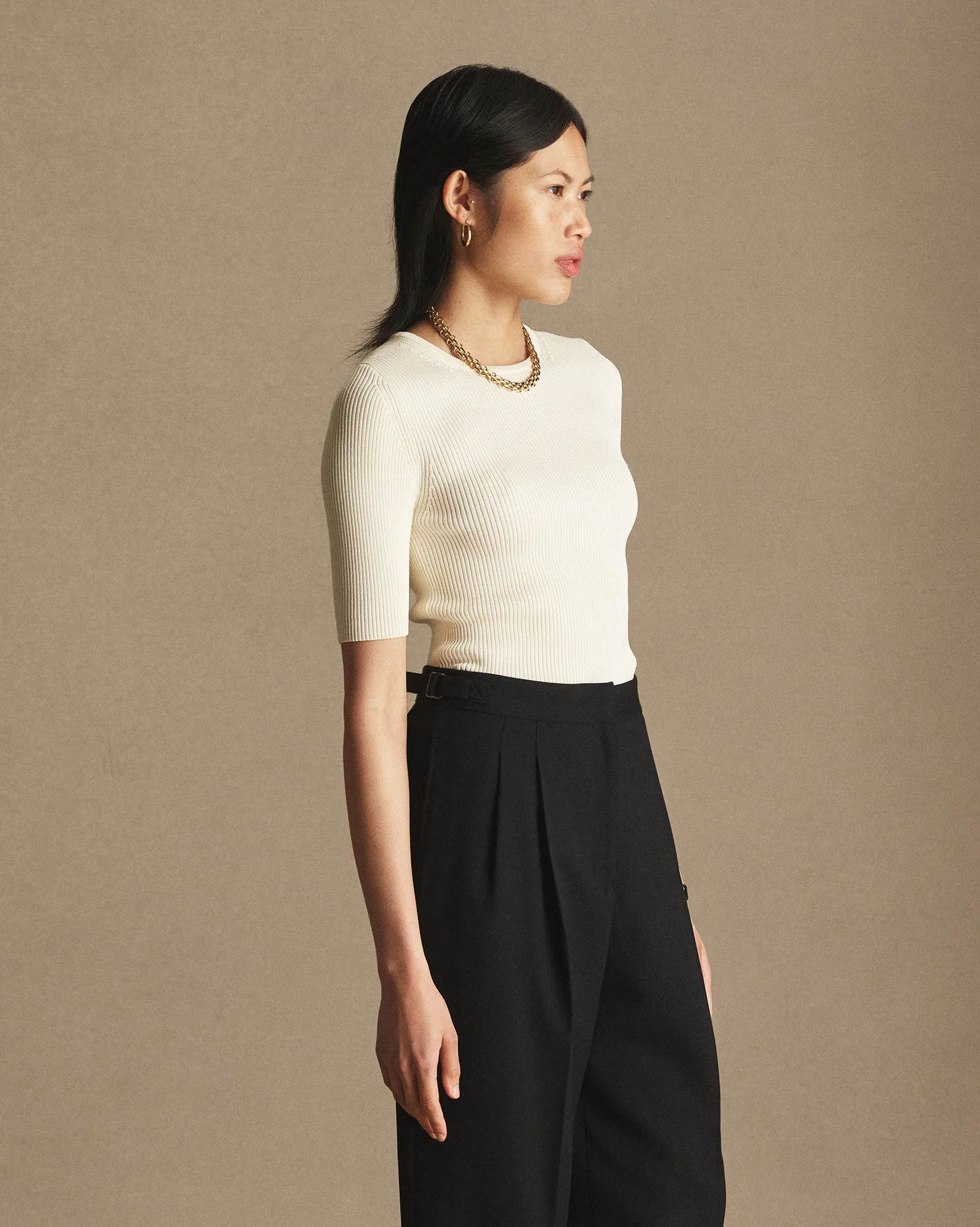 Georgia Rib Knit Tee - Off White