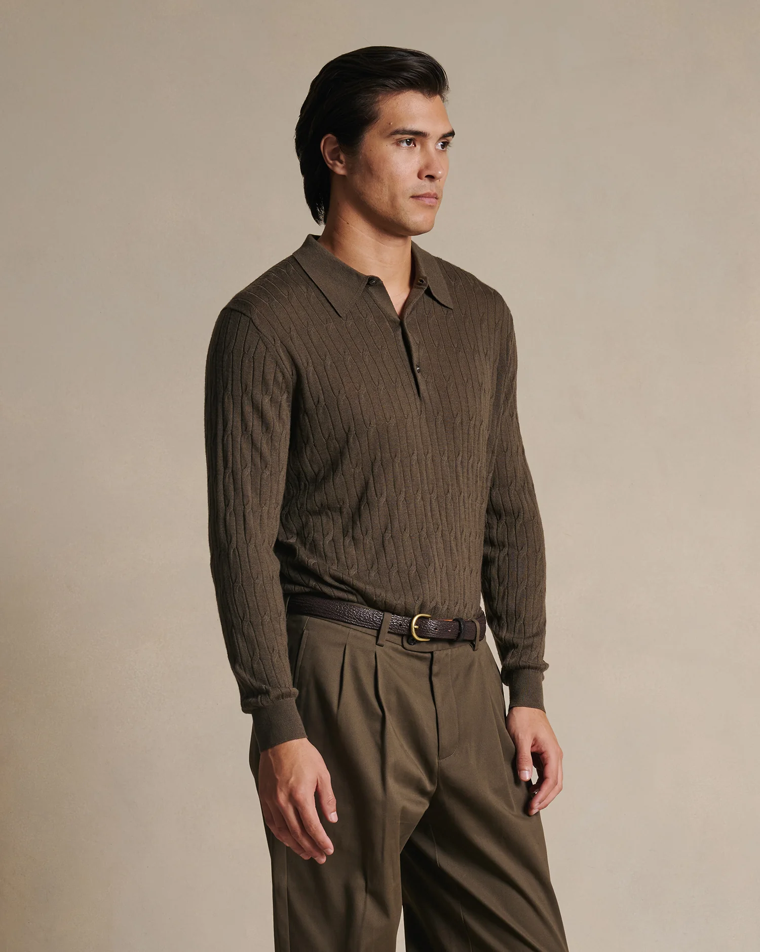 Our cable knitted polo is a timeless classic reimagined with luxury in mind. Meticulously crafted from 100% ultra-fine merino wool offering unparalleled comfort and sophistication. Whether layered or worn on its own, its soft feel and highly breathable knit ensure versatility season after season.