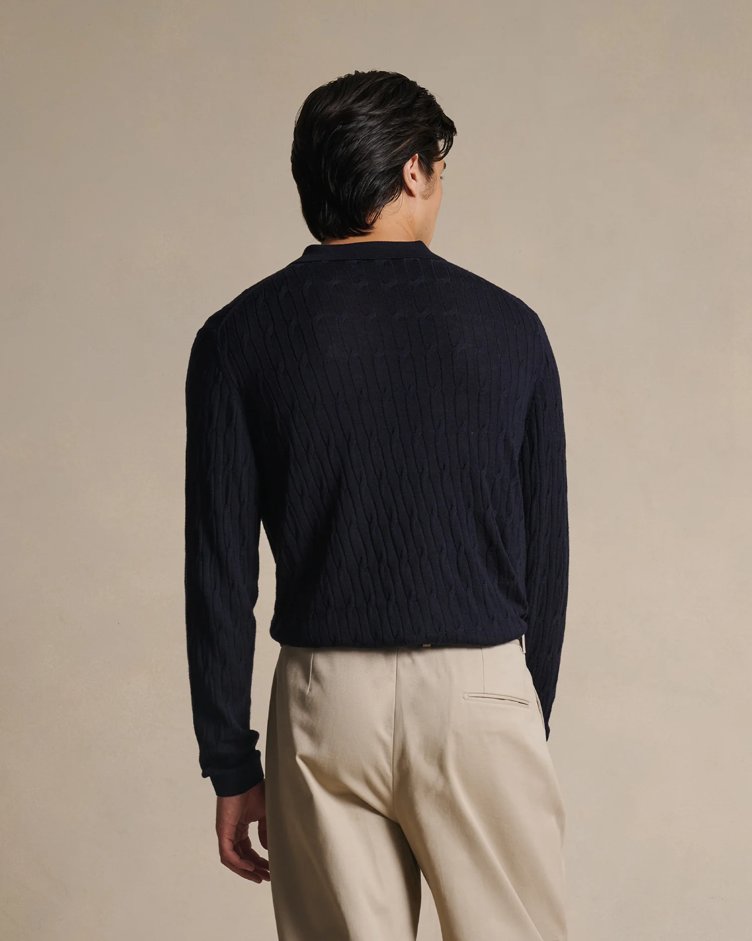 Our cable knitted polo is a timeless classic reimagined with luxury in mind. Meticulously crafted from 100% ultra-fine merino wool offering unparalleled comfort and sophistication. Whether layered or worn on its own, its soft feel and highly breathable knit ensure versatility season after season.